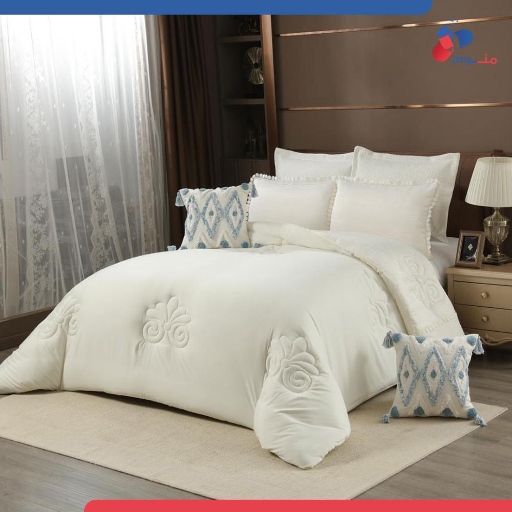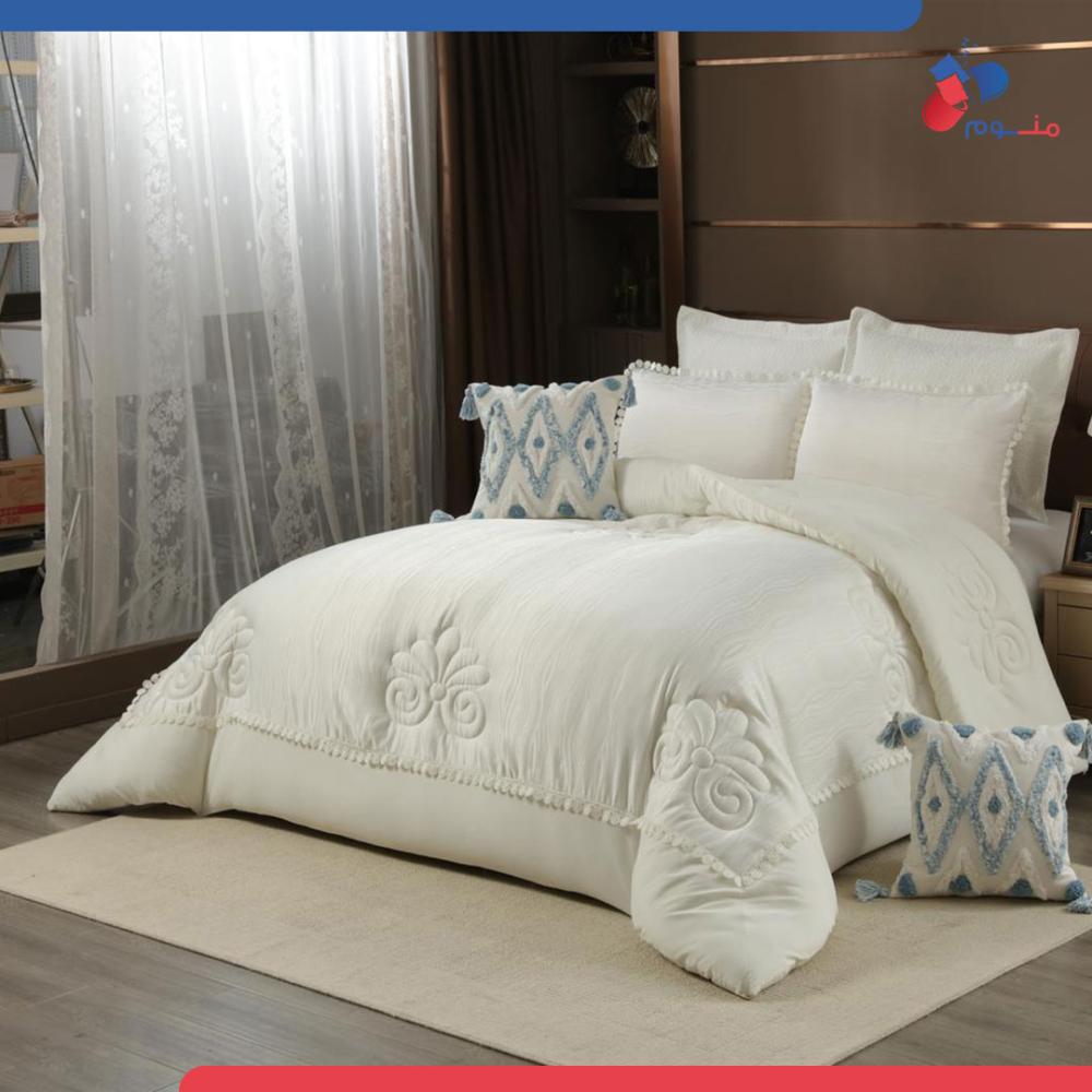 مفرش فاخر بتصميم أنيق وخامة ناعمة تمنحك نومًا هانئًا. مثالي لإضافة لمسة راقية إلى غرفتك يتكون الطقم من 8 قطع متكاملة لتمنح سريرك مظهراً متناسقاً وفاخراً