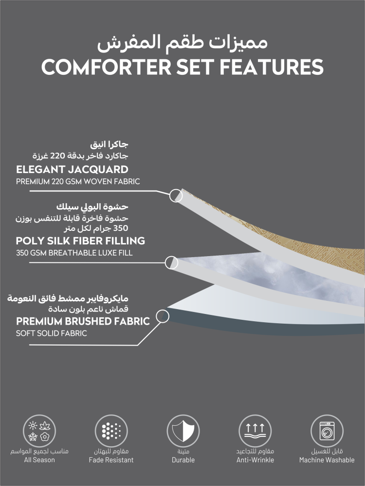 يتكون الطقم من 8 قطع متكاملة لتمنح سريرك مظهراً متناسقاً وفاخراً