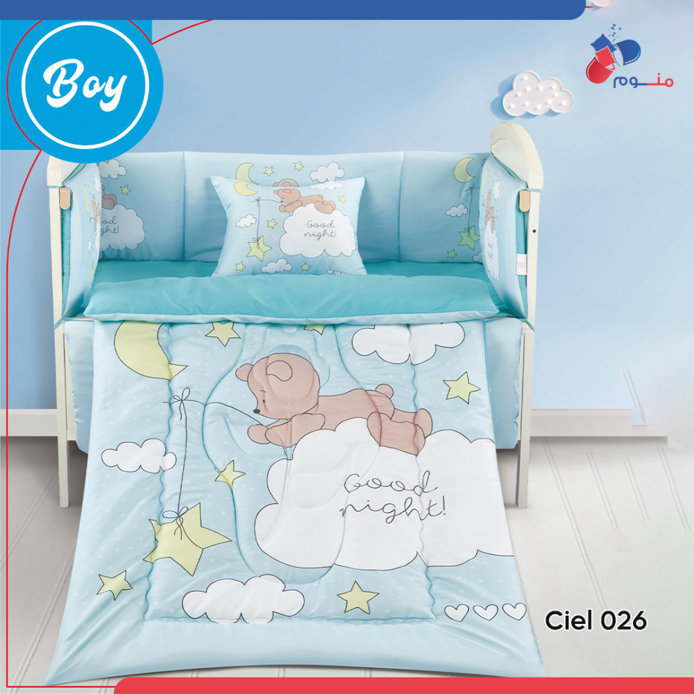 طقم مفارش مواليد بيبي مع حواجز حماية لراحة وأمان لطفلك - 5 قطع .. اجعل طفلك ينام بأمان وراحة لا مثيل لهما مع طقم مفارش بيبي شامل يحتوي على حواجز حماية تحميه من السقوط وتوفر له بيئة نوم مثالية.