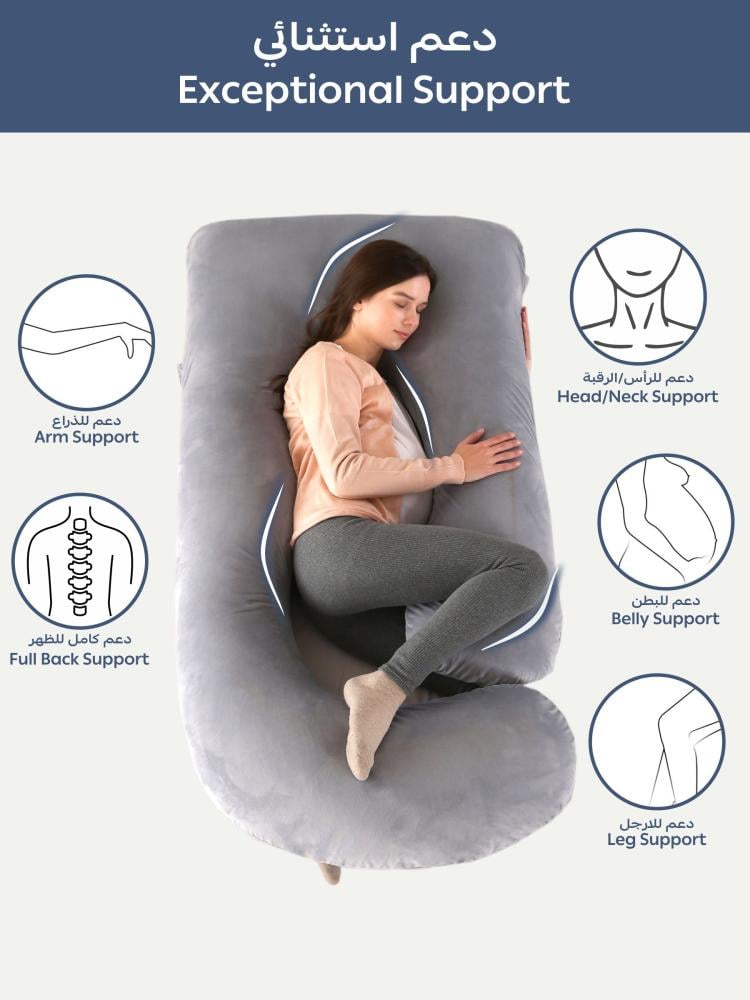استمتعي بأقصى درجات الراحة والدعم خلال فترة الحمل مع وسادة الحمل على شكل G باللون الفضي من منوم صُممت هذه الوسادة خصيصًا لتلبية احتياجات الأم الحامل، حيث تمنح دعماً كاملاً للجسم من الرأس وحتى القدمين، وتساعدك على النوم براحة أكبر والتخلص من الآلام المزعجة.