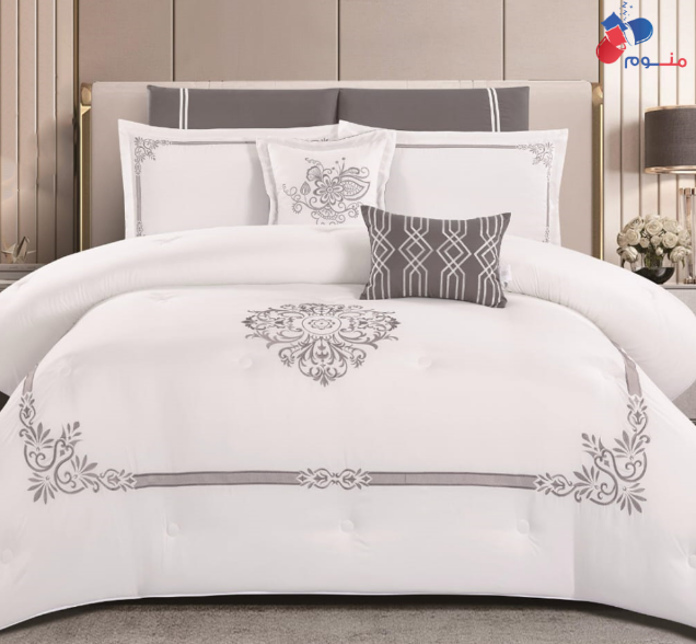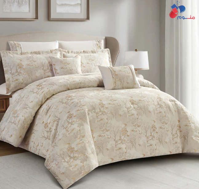 تستطيع أن تمنح غرفة نومك أجواءً راقية ولمسة من الفخامة مع طقم لحاف جاكار من 8 قطع DT3867 من متجر منوم وهو من احدث انواع مفروشات السرير، المصمم ليجمع بين الأناقة، الراحة، والجودة العالية التي تبحث عنها كل أسرة تهتم بجمال وأناقة بيتها.
